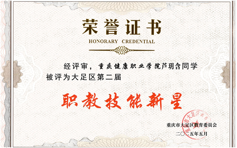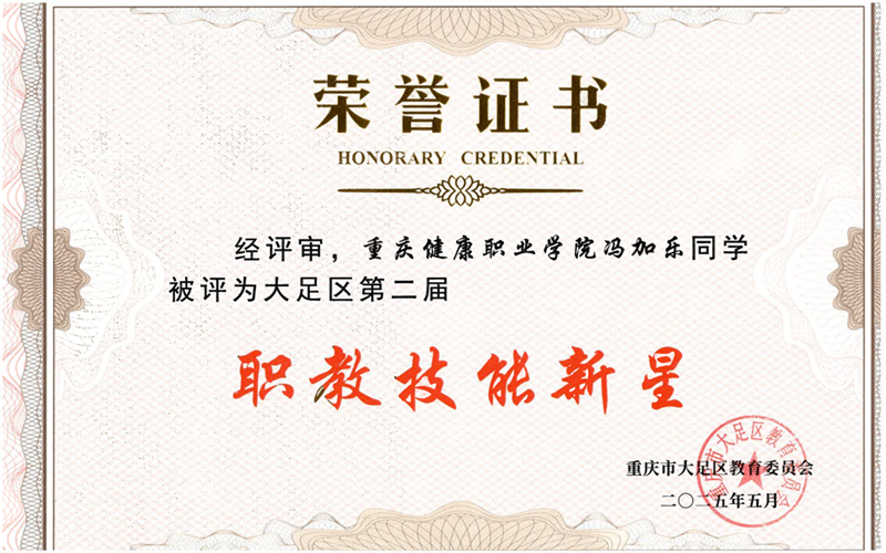 近日,重庆市大足区第二届“职教技能新星”评选结果正式揭晓。经过技能展示、综合评审等环节严格选拔,我院冯加乐、芦玥含同学凭借扎实的专业技能与创新实践能力,荣获“职教技能新星”荣誉称号。